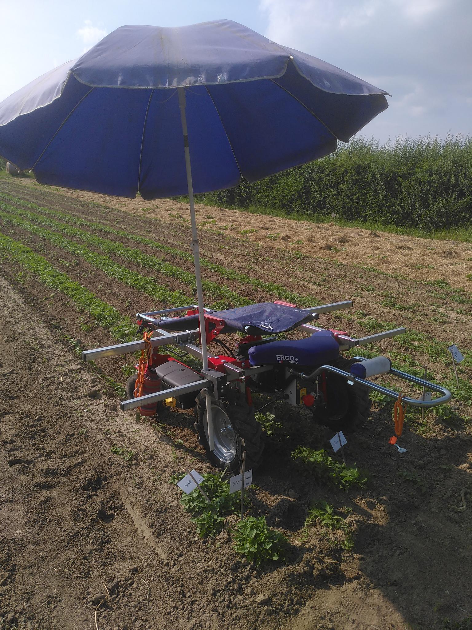Wir haben ein wichtiges Arbeitsgerät bekommen: Ein Beetflieger hilft uns, in rückenschonender Haltung die Möhren, Pastinaken, Zwiebeln etc. zu jäten. Er wird mit dem eigenen Solarstrom vom Geräteschuppen-Dach geladen.