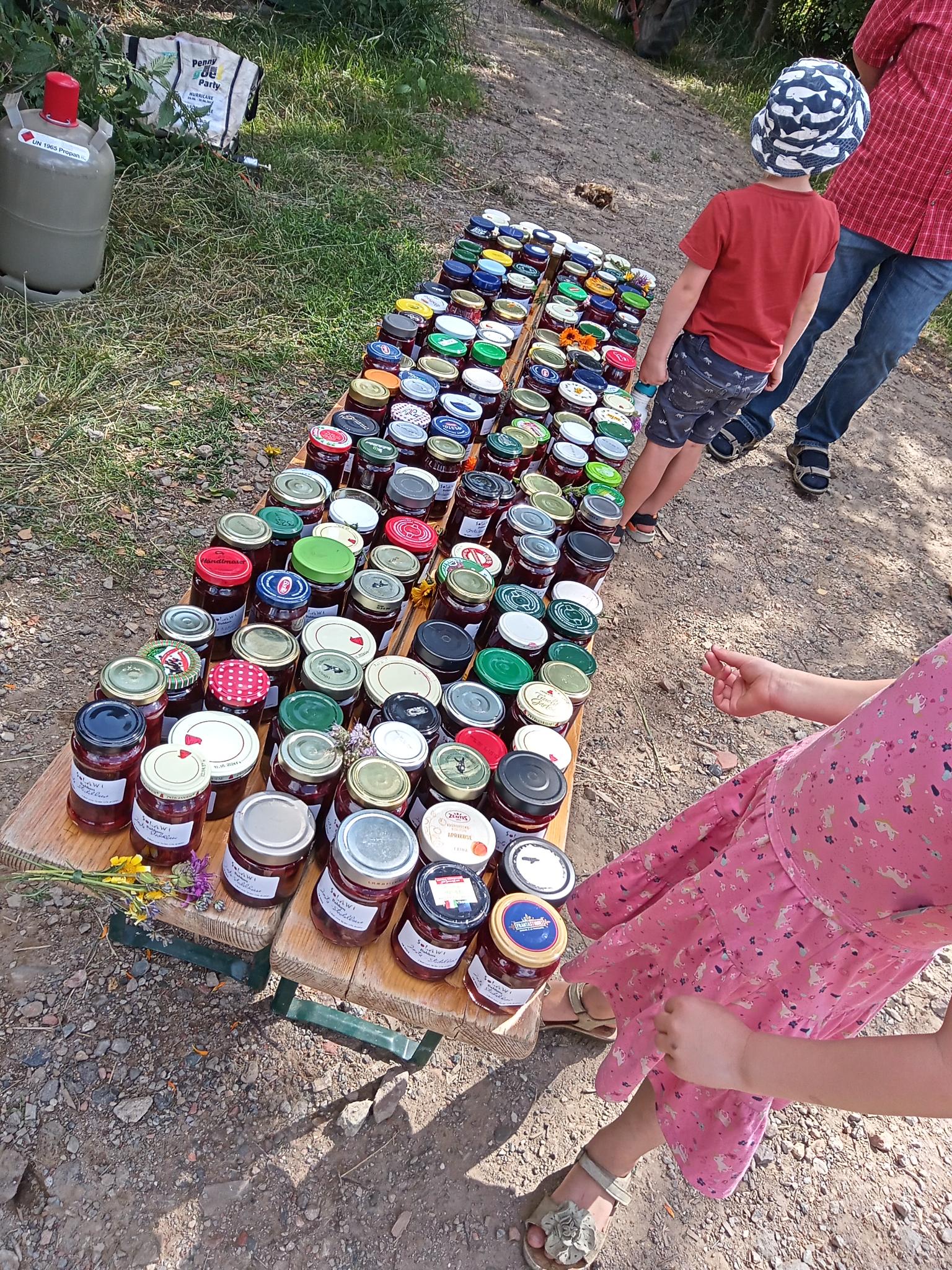 Im Juni haben wir beim Beerenfest im Freien viele verschiedene Sorten Marmelade gekocht. Jedes Mitglied bekam etwas ab.