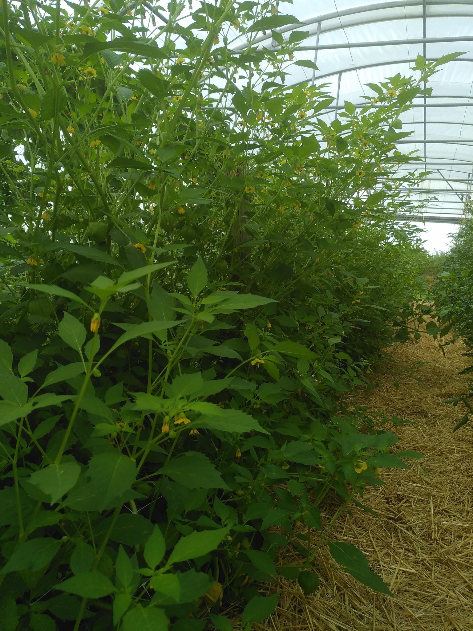 Zum ersten Mal wurden Tomatillos angebaut, die eng mit der Physalis verwandt sind. Man kann sie voll ausgereift (gelb) wie eine Frucht roh essen. Sie ist dann ähnlich süß wie eine Stachelbeere. Grün kann man sie wie ein Gemüse zu Saucen und Chutneys kochen. Vorher angeröstet sollen sie besonders lecker schmecken.