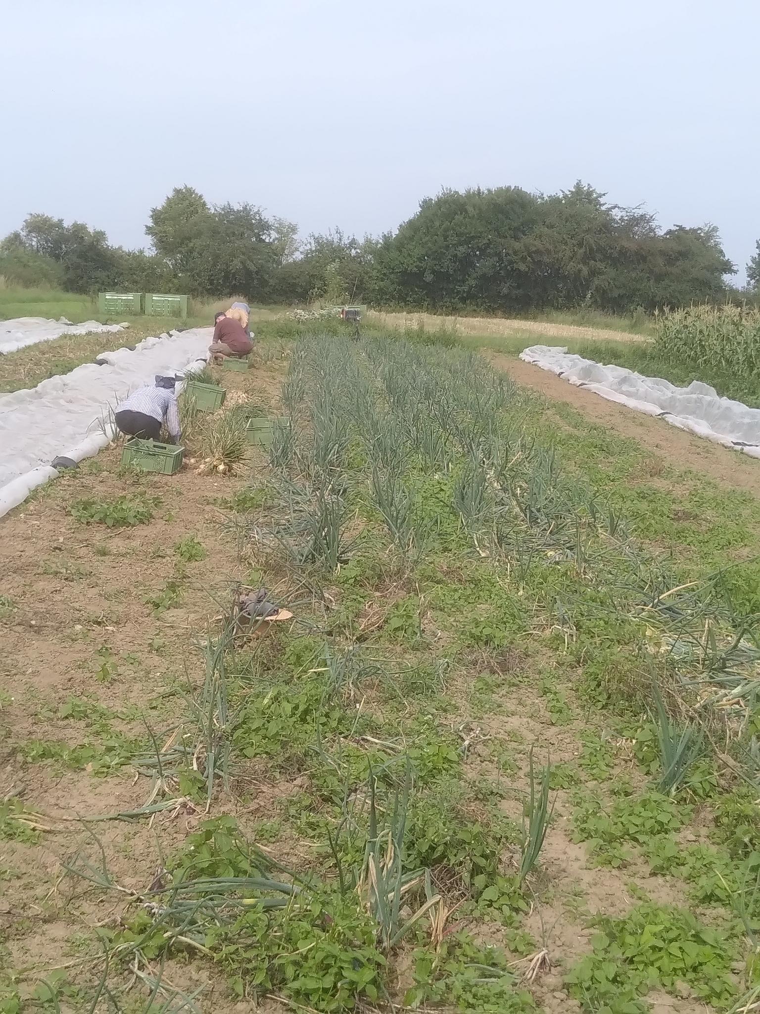 Deshalb und wegen der feuchten Periode ab Ende Juni konnte Anfang August eine gute Zwiebelernte erreicht werden. Die Mitglieder halfen beim Roden, Bündeln und Aufhängen zum Trocknen.